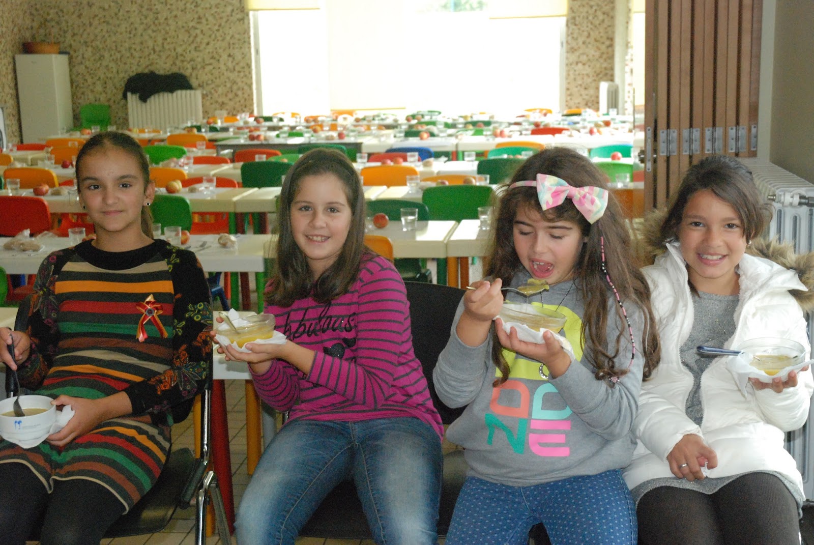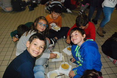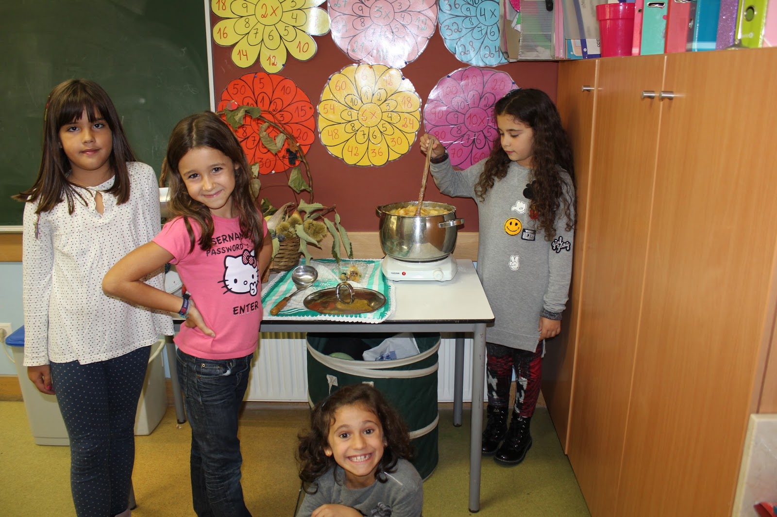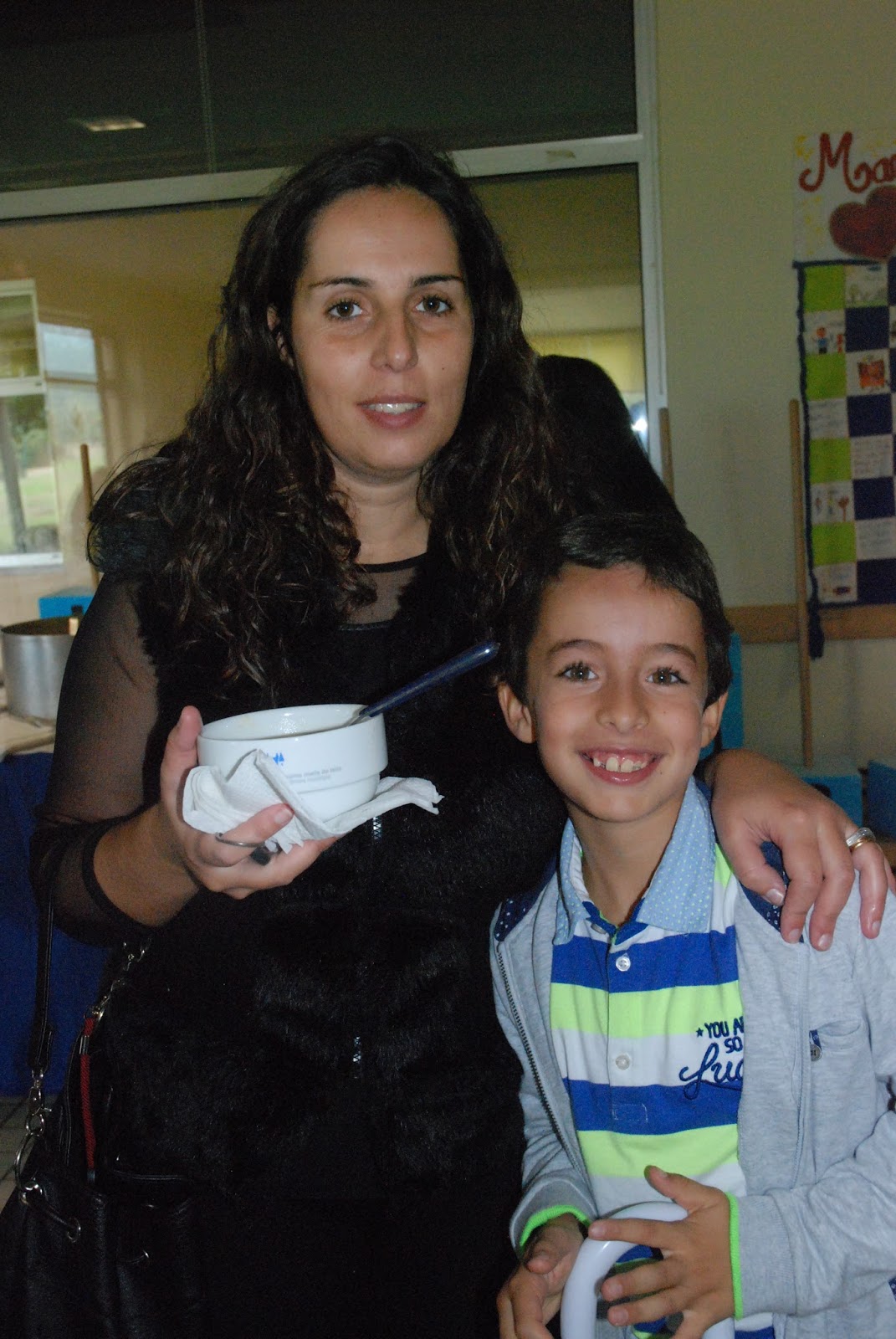 Para celebrar o Dia da Alimentação, a nossa escola dinamizou o conto tradicional "O caldo de pedra". Até tivemos direito ao nosso caldinho! Todos os pais, avós, tios, tias, vizinhos... foram convidados a provar o nosso caldo de pedra. Estava muito saboroso. E a pedra continuou no fundo da panela!