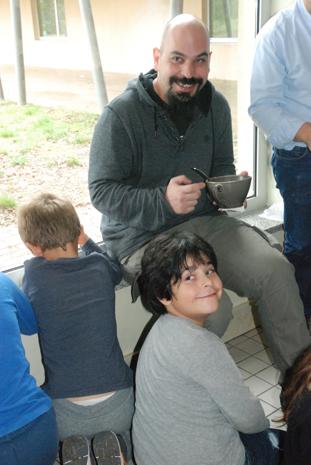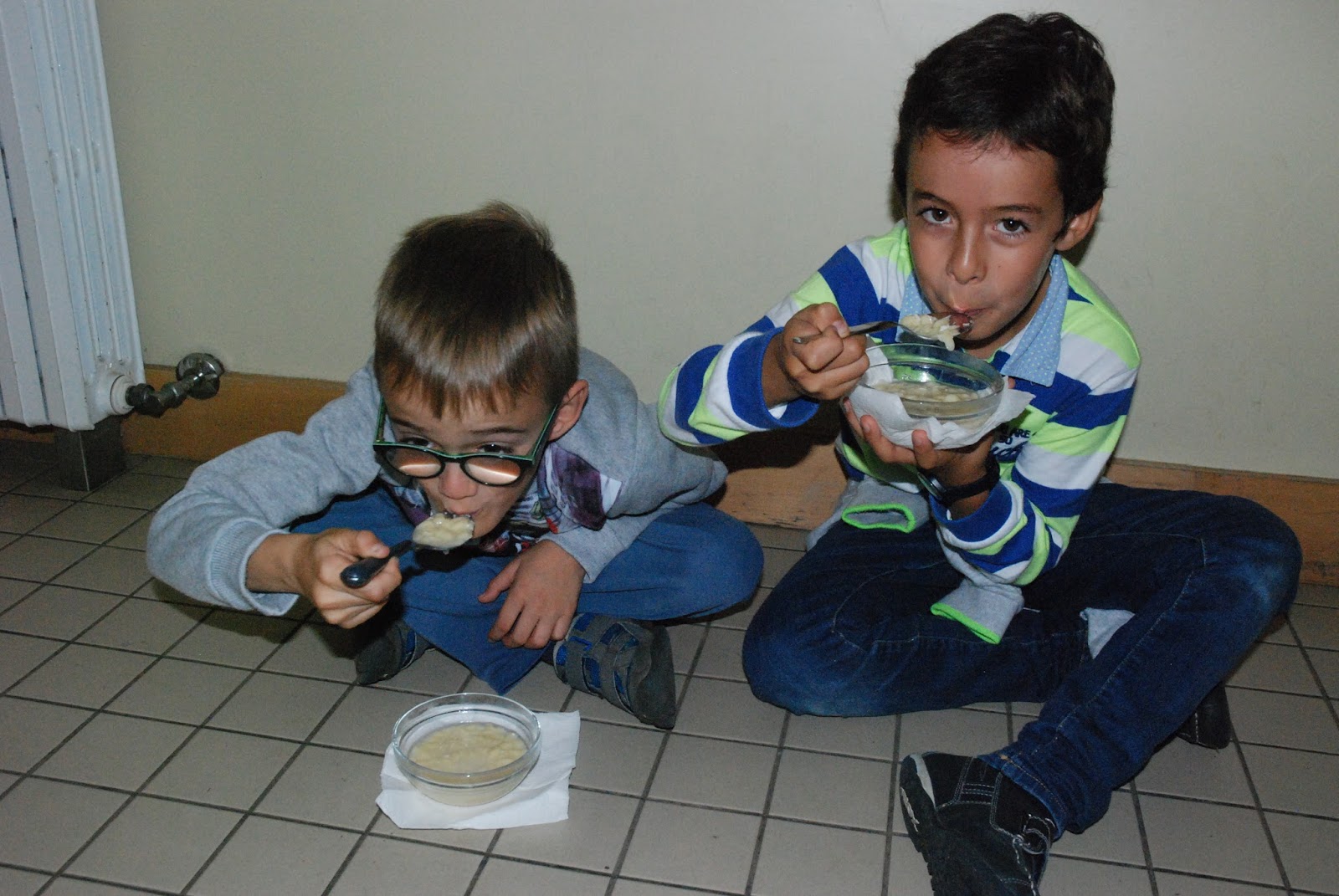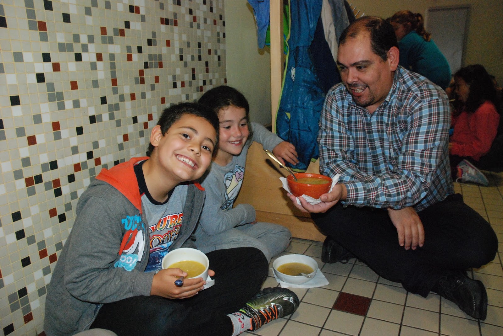 Para celebrar o Dia da Alimentação, a nossa escola dinamizou o conto tradicional "O caldo de pedra". Até tivemos direito ao nosso caldinho! Todos os pais, avós, tios, tias, vizinhos... foram convidados a provar o nosso caldo de pedra. Estava muito saboroso. E a pedra continuou no fundo da panela!