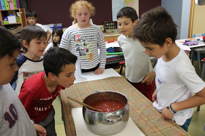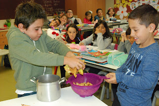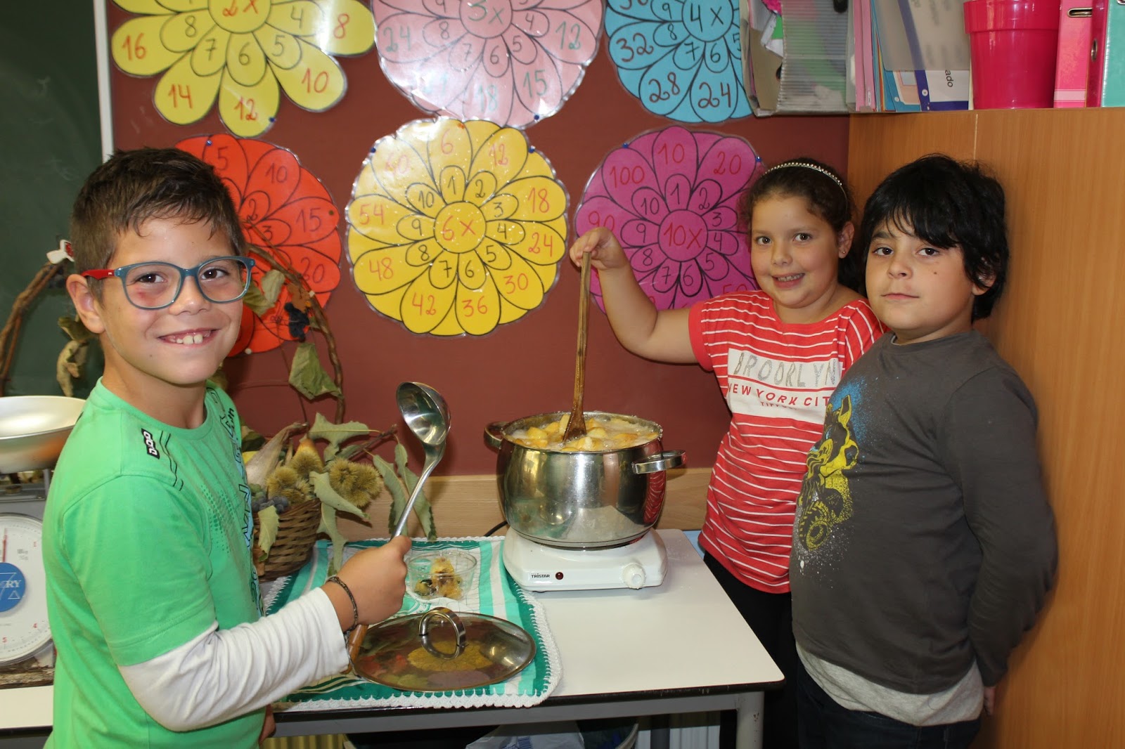 As turmas de 3º ano pesquisaram diversas receitas relacionadas com o Outono. No Dia da Alimentação fizeram marmelada. E nada de desperdício! Tal como no tempo das suas avós, aproveitaram as cascas e os caroços e fizeram geleia. Pesaram os ingredientes, lavaram, mediram, adicionaram, mexeram, provaram...